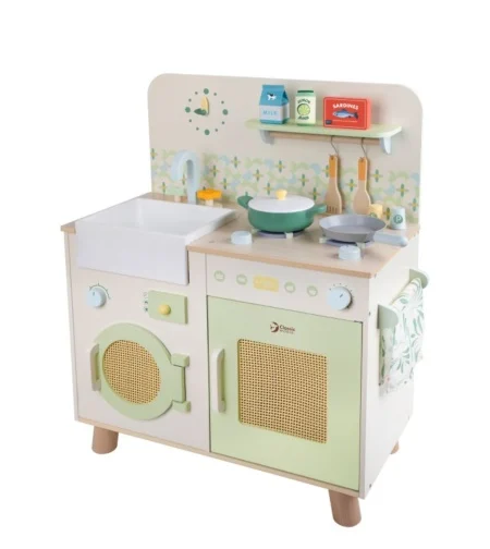 Drvena Kuhinja Natura Classic World je višenamenski kuhinjski set dizajniran za decu koja vole da se igraju i istražuju svet kuvanja. Ovaj set omogućava deci da se osećaju kao pravi mali kuvari dok pripremaju ukusne obroke za svoju porodicu. Dimenzije 60*30*74.4cm, težina 10kg