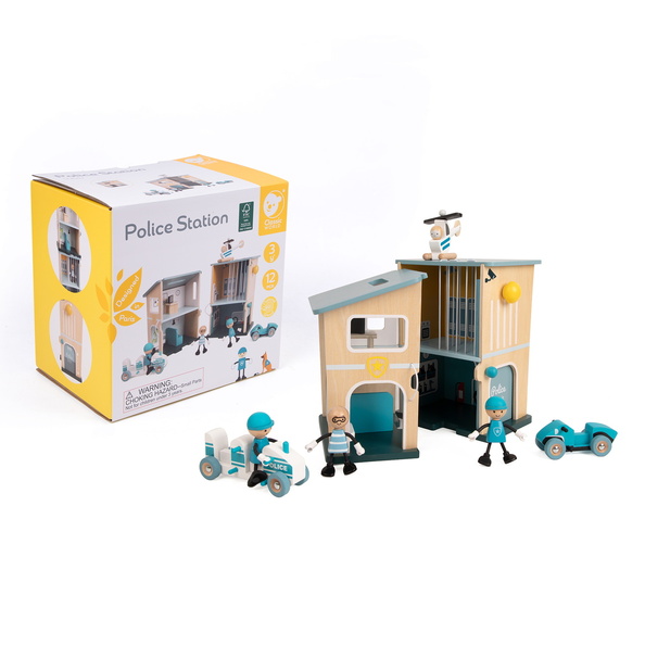 Uđite u akciju sa ovom policijskom stanicom brenda Classic World – kompletom za igru punim funkcija koji deci omogućava da preuzmu kontrolu nad zakonom i redom u svom gradu. Dizajnirana za pripovedanje i avanturu otvorenog tipa, ova prenosiva drvena stanica se otvara otkrivajući detaljan enterijer, uključujući zatvorsku ćeliju, recepciju i detektivsku kancelariju.