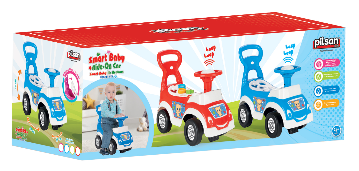 Ovaj model kombinuje vožnju i edukativnu igru. Na volanu se nalazi mehanička sirena koja podstiče razvoj slušne percepcije, dok sedište sadrži sorter oblika sa 5 šarenih kocki koji pomaže u razvoju fine motorike, logičkog razmišljanja i prepoznavanja oblika. Ispod sedišta nalazi se praktičan prostor za odlaganje igračaka, pa mališani mogu poneti svoje omiljene stvari gde god da krenu. Pilsan Smart Baby Car namenjen je deci starijoj od 12 meseci i predstavlja odličnu kombinaciju zabave i učenja kroz igru.