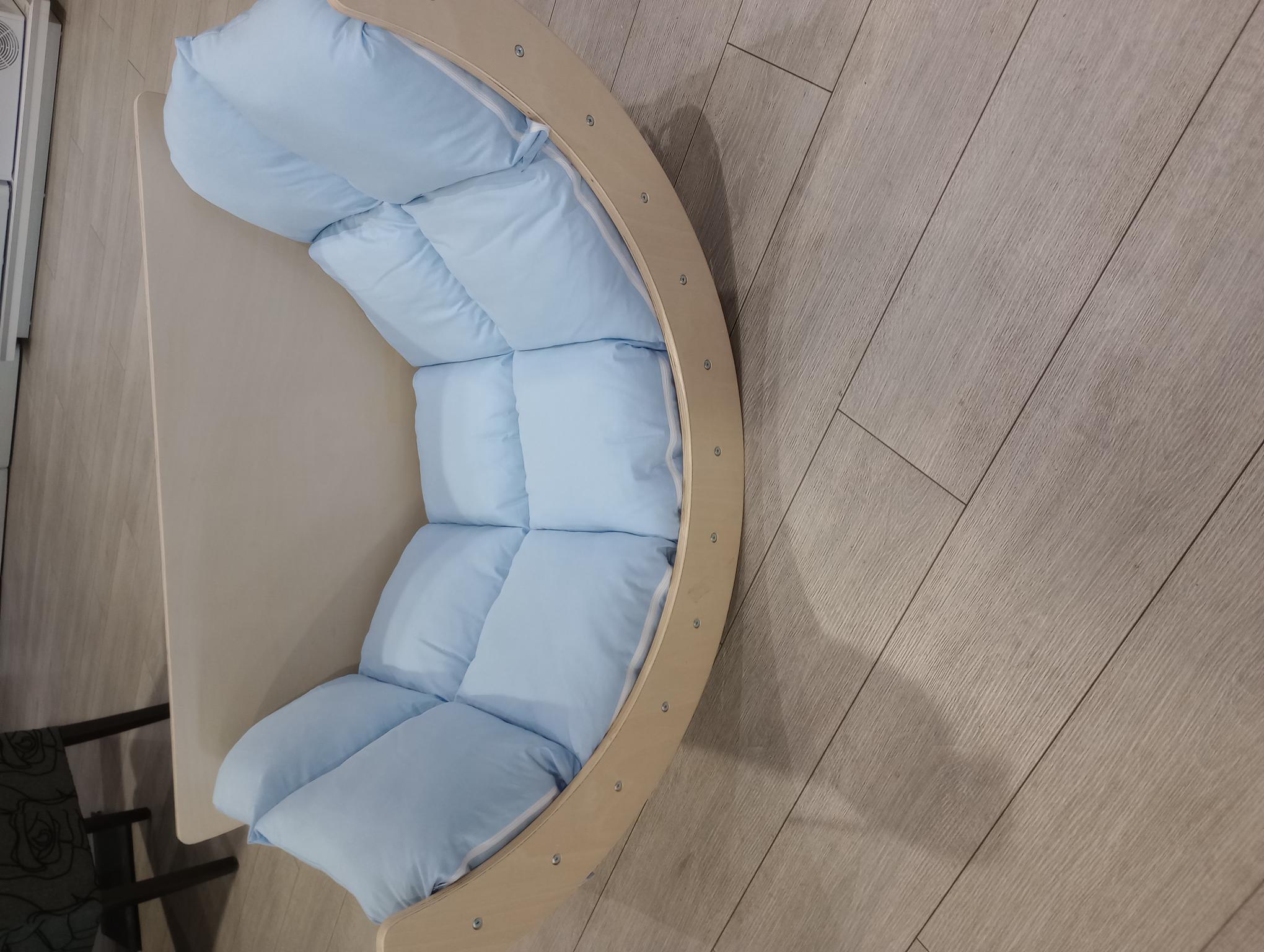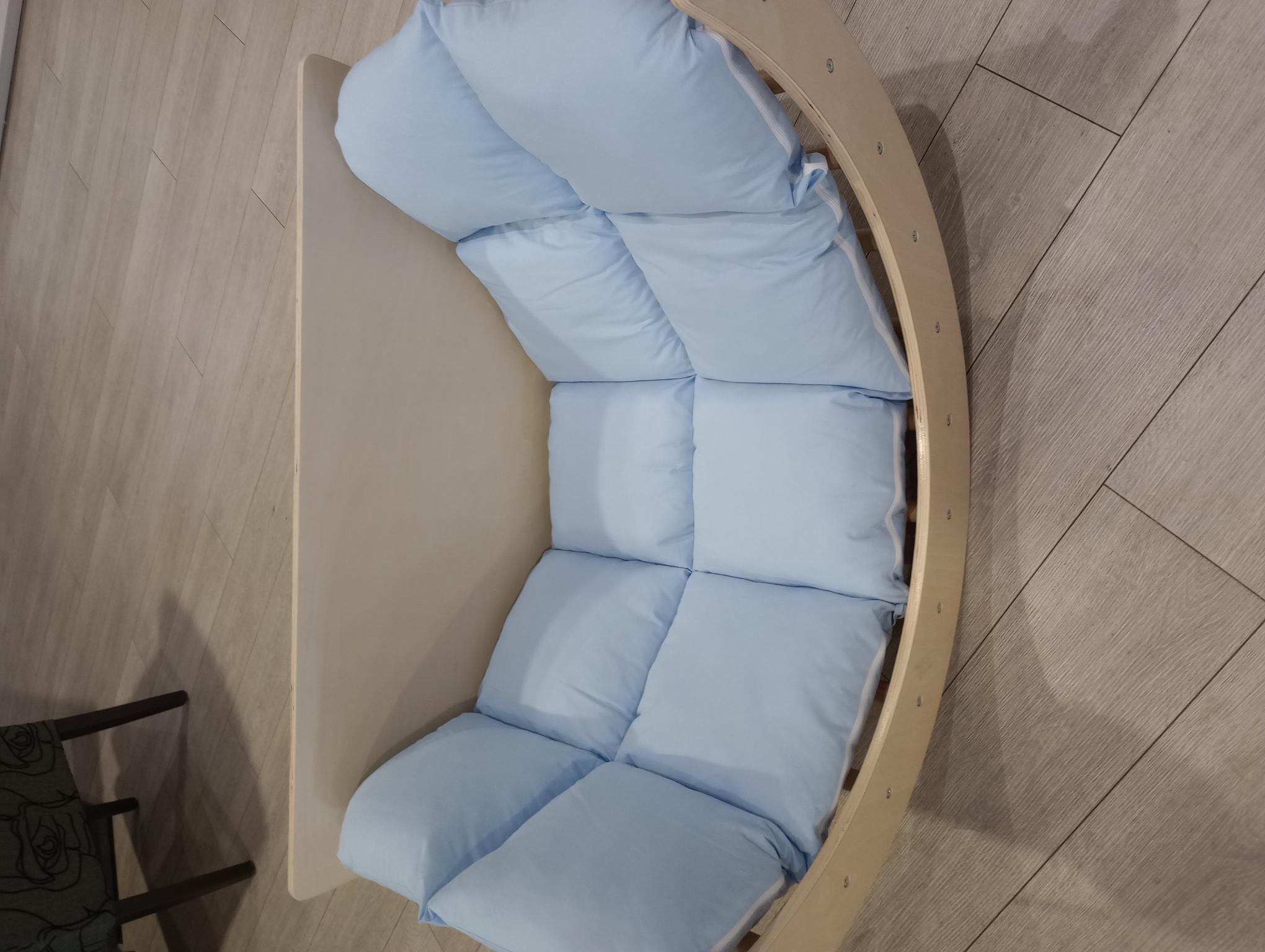 Upotpunite Pikler set i obezbedite svom mališanu još više udobnosti tokom igre uz Pikler jastuk za luk u nežno plavoj boji.