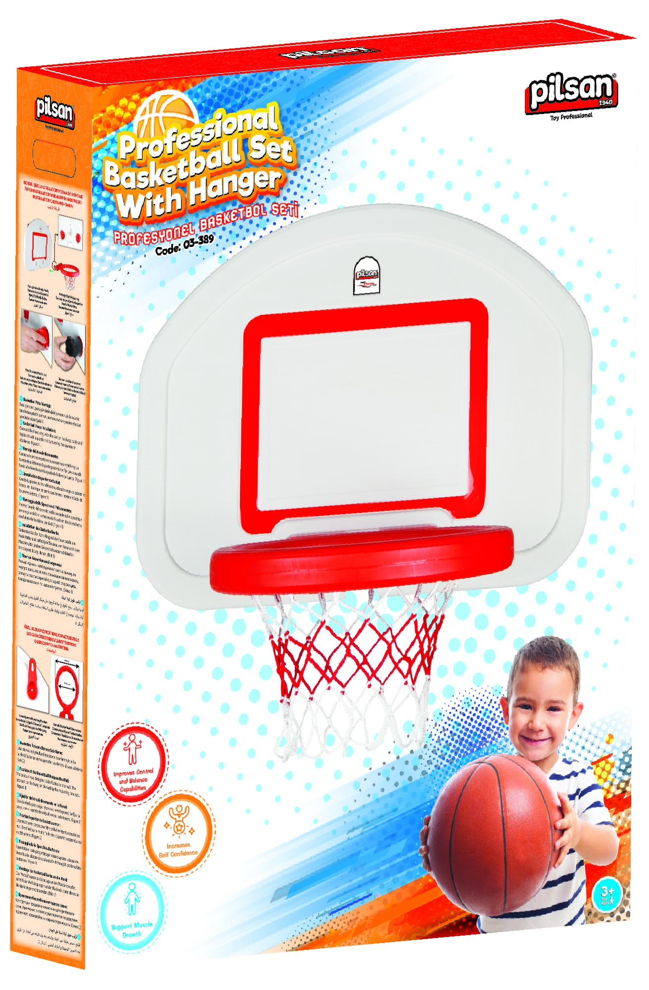 Professional Basket Set with Hanger 03-389 brenda Pilsan savršen je izbor za male ljubitelje košarke uzrasta 36+ meseci. Ovaj praktičan koš sa nosačem omogućava igru sa pravom košarkaškom loptom, pružajući deci autentično sportsko iskustvo u kućnim ili spoljašnjim uslovima.