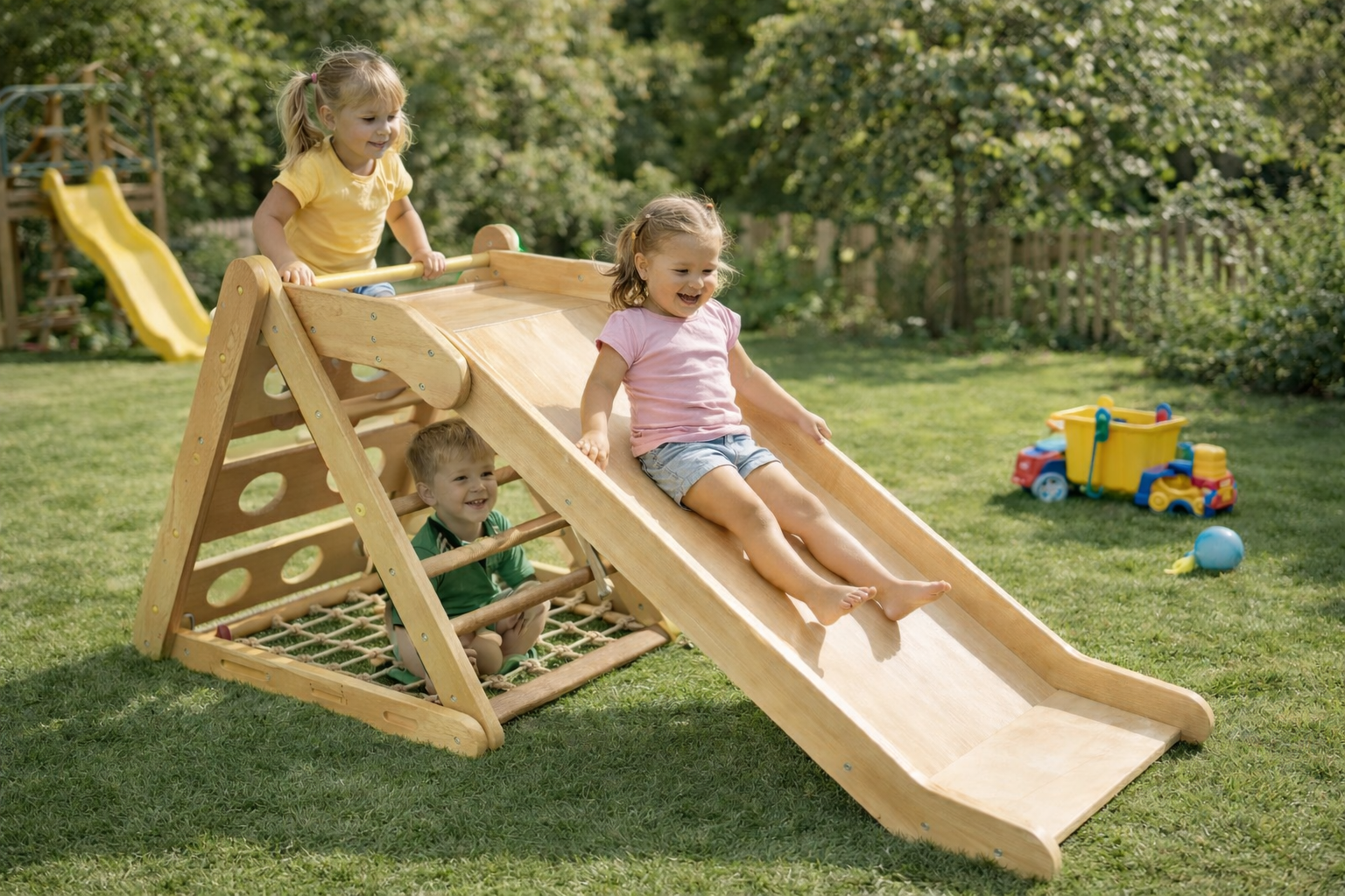 Trougao penjalica i tobogan je dobitna kombinacija za zabavu mališana! Ovaj Pikler set je izrađen od prirodnih materijala i boja koje nisu štetne po zdravlje dece. Stablna konstrukcija omogućuje deci da koriste izabrani deo za penjanje a zatim da se pomoću tobogana spuste. Zabava traje uvek iznova i iznova! Trougao ove Pikler penjalice omogućuje penjanje mališana na različite načine, pomoću strane sa konopcima, horziontalnim šipkama i strane sa pozicijama za penjanje. Trougao se može koristiti odvojeno od tobogana koji se po potrebi može pričvrtiti za šipke i tako kreirati kompletnu penjalicu sa toboganom. Ovaj set se može kombinovati sa drugim igračkama i lutkama tako da osmislite novu zanimljivu igru svaki put. Pomoću ovog sobnog Pikler seta deca razvijaju grubu motoriku, prostornu orjentaciju, logičko razmišljanje, zabavljaju se istražuju i razvijaju kreativnost.