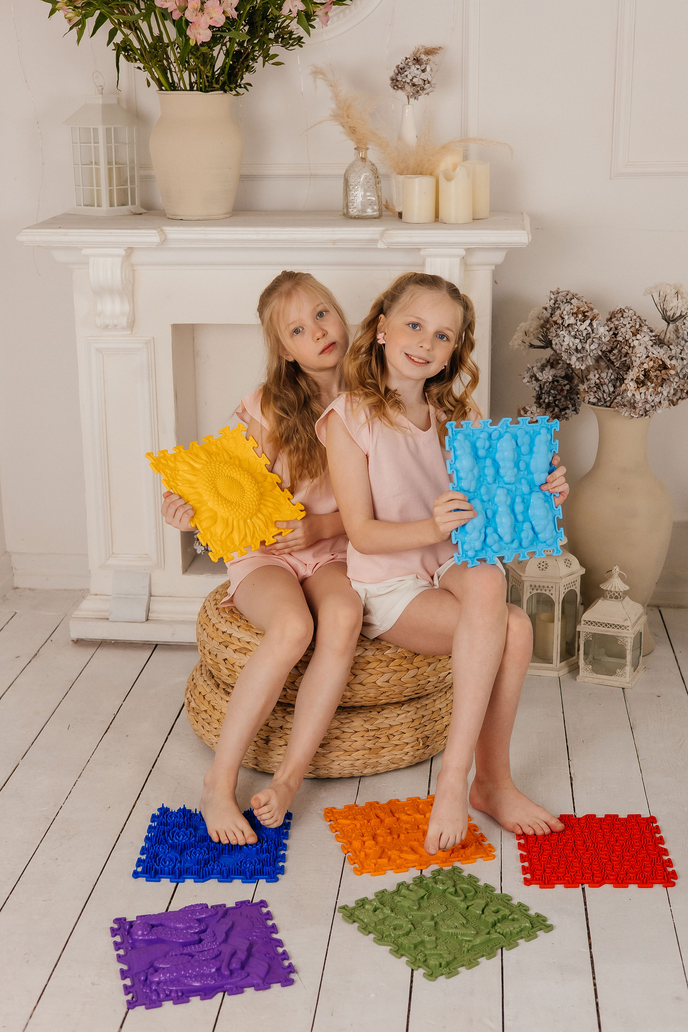 Set „Dodir prirode“ sadrži 7 najpopularnijih ortopedskih masažnih podloga – slagalica (mekane teksture):