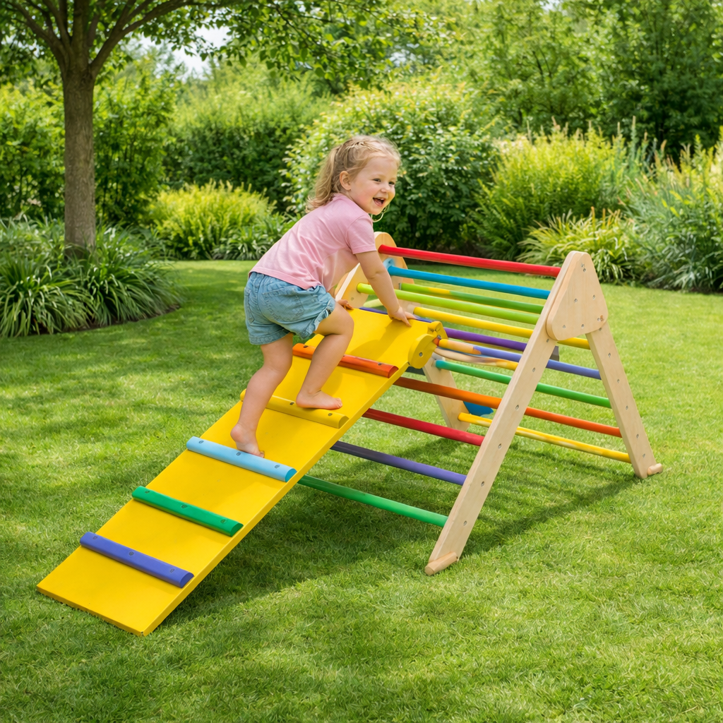 Zanimljiva kompaktna Pikler Rastimo zajedno penjalica i tobogan za višesatnu zabavu igru i razvoj mališana. Ova penjalica se može koristiti na više načina. Može se koristiti kao penjalica pomoću trougla, zatim sa dodatkom može biti veća penjalica ili tobogan. Pored toga, može se kombinovati i postati šator koji će deca obožavati. Pomoću ove pikler penjalice deca se penju i istovremeno razvijaju svoje motoričke i kognitivne sposobnosti. Doprinosi razvoju grube motorike kod dece, ravnoteže i balansa. Tu je i unapređenje veština logičkog razmišljanja i sistema rešavanja problema kroz osvajanje novih viših površina za penjanje.