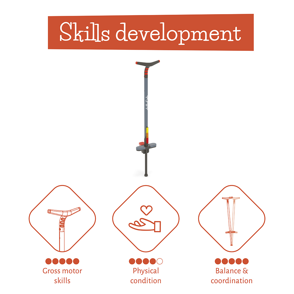 Jedinstvena centralizovana dodatna pedala za stopalo poziva na smele nove izazove - možete li savladati pogoing jednom nogom ili jednom rukom? Ovaj inovativni dizajn ne samo da pruža beskrajnu zabavu, već i značajno poboljšava ravnotežu, koordinaciju i krupnu motoriku. Kada stignete potpuno sastavljeni, spremni ste da odmah krenete u akciju.