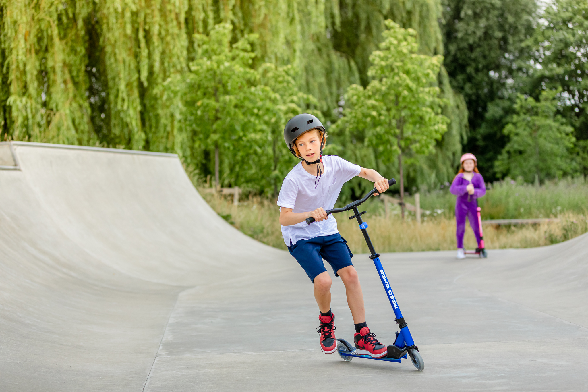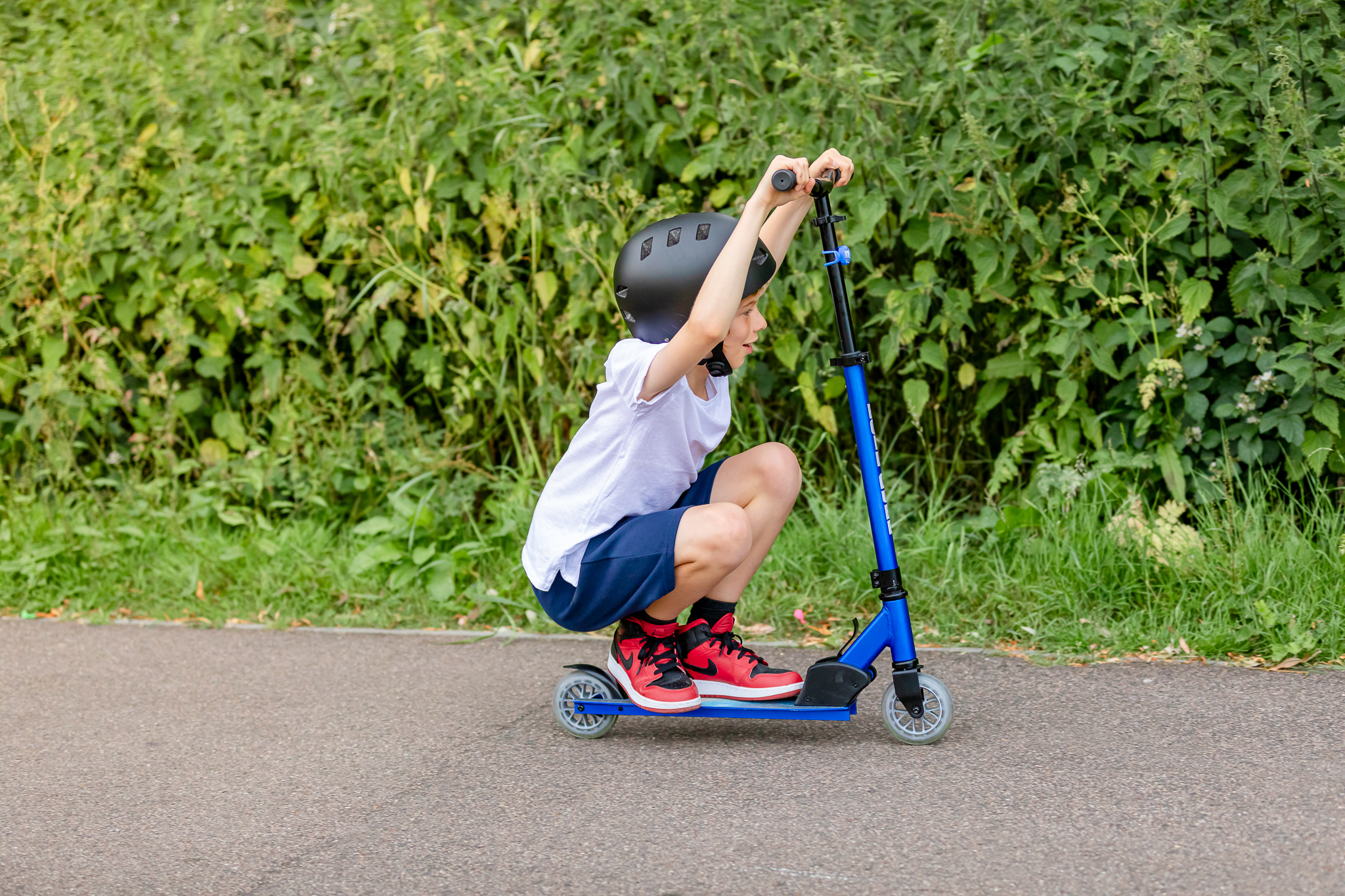 Kompaktan, sportski i lagan, naš Deluks trotinet sa dva točka je spreman da se nosi sa svakim vozačem koji je već stekao samopouzdanje balansiranjem. Praktična alternativa vožnji bicikla, Deluks trotinet sa dva točka se upravlja kao bicikl, ali je praktično sklopiv i ultra kompaktan, tako da aktivna vožnja ne može biti lakša! Njegov super lagan okvir i upravljač u stilu čopera omogućavaju vrhunsku okretnost i preciznost prilikom vožnje trotoarima ili parkovima. Uz to, lako se nosi kući jer se ručke upravljača i trotinet sklapaju za nekoliko sekundi.