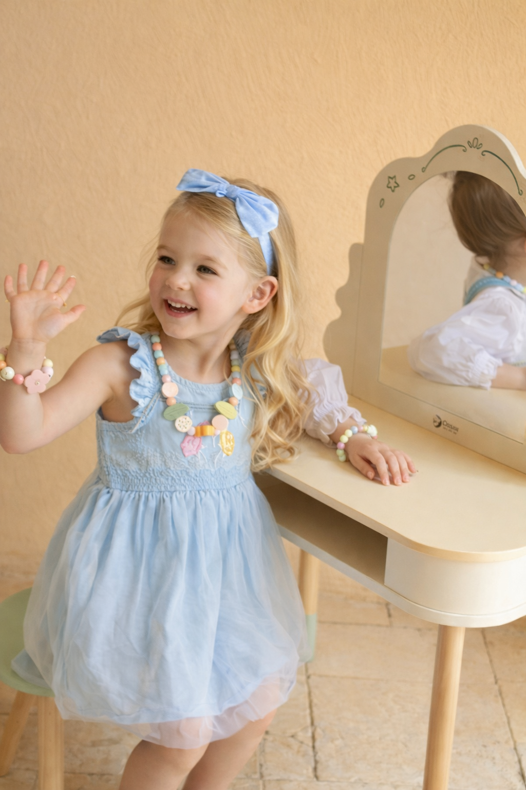 Ovaj elegantni ormarić za šminkanje savršen je dodatak sobi za princeze. Sa svojim modernim dizajnom i praktičnim funkcijama, Veliki salon lepote Classic World nudi dovoljno prostora za sve vaše kozmetičke proizvode i dodatke. Uz ovaj set devojčice razvijaju kreativnost, socijalne veštine, unapređuju finu motoriku i uživaju u igri koja je iznova zanimlijiva. Dimenzije 64*38.8*90.6cm, težina 9kg