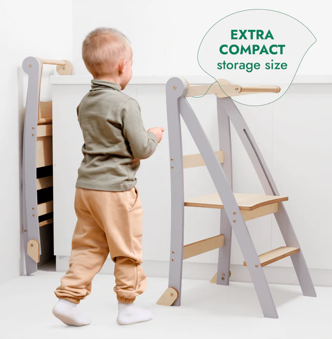 Toranj za decu omogućava deci da aktivnije učestvuju u kućnim aktivnostima dok obavlja korisne kuhinjske zadatke i podstiče maštovito razmišljanje.
